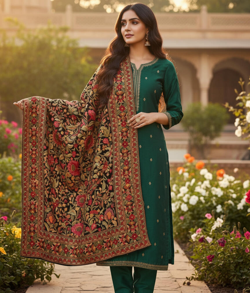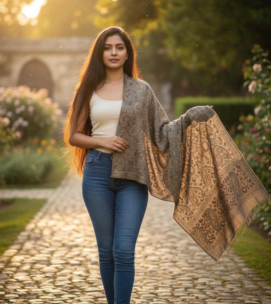 Explore our collection of stylish Kashmiri Stoles, made from soft materials and featuring traditional designs, perfect for adding a touch of elegance to any outfit.